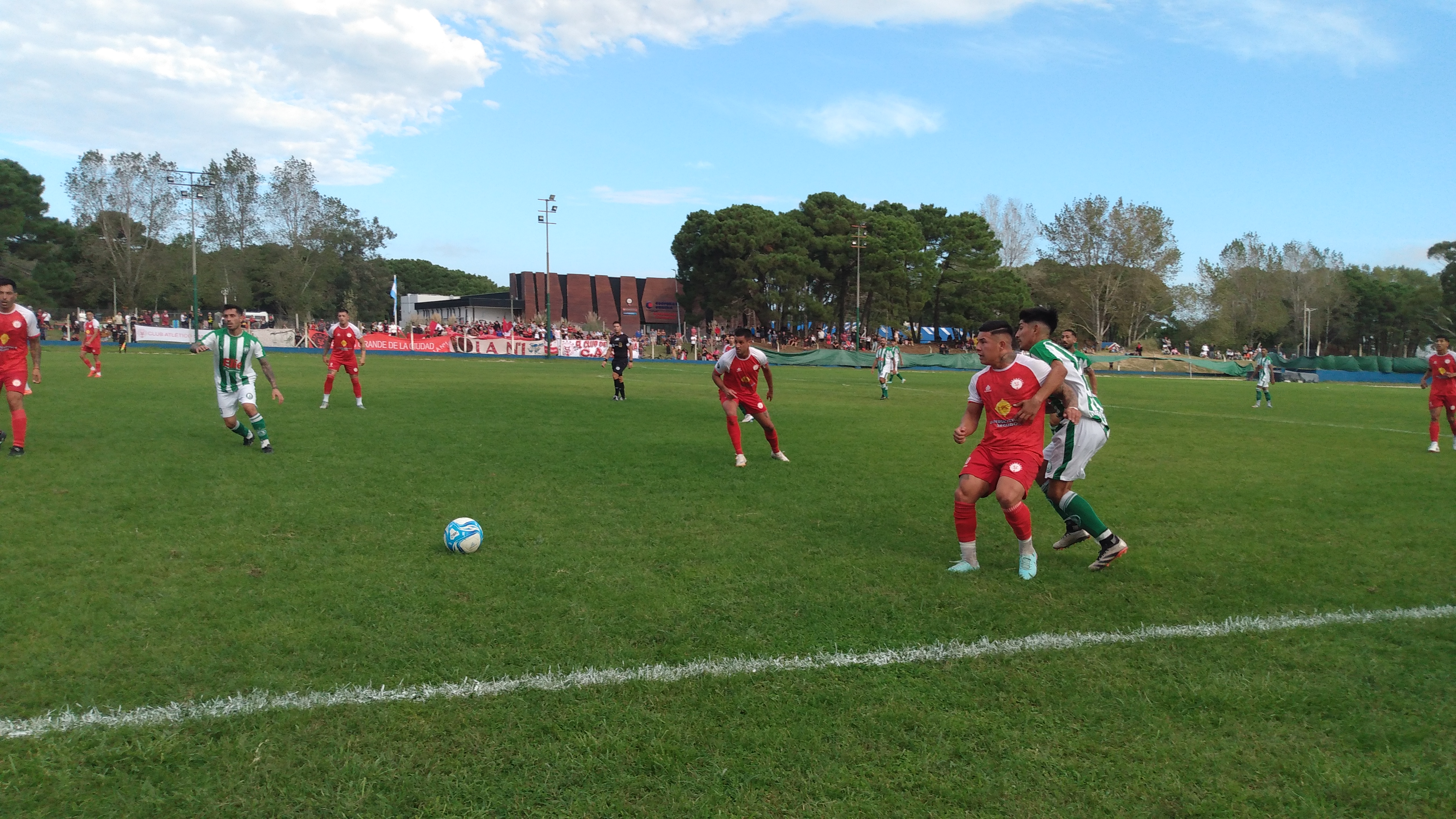 De arranque el árbitro, de la Liga de Mar Chiquita, amonestó a Olivera por una fuerte infracción, dejando en claro que no toleraría ninguna jugada para la polémica.