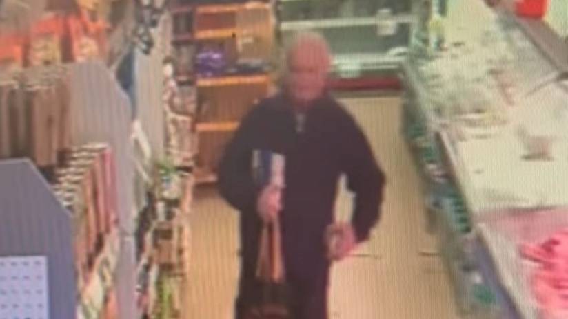 En un video publicado el viernes, se observa a un hombre mayor metiendo en sus bolsillos algunas bolsas de frutos secos (fotos), mientras que en el que ilustra la nota se observa a un sujeto guardando entre sus ropas productos de higiene personal.