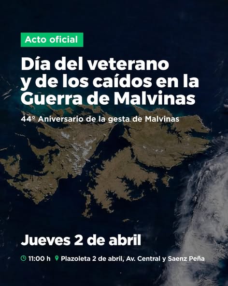 Pinamar ©.- La Jefatura Distrital de Pinamar invita a participar del Acto Oficial por el "Día del Veterano, Veterana y de los Caídos en la Guerra de las Malvinas". La ceremonia se llevará a cabo el día Jueves 2 de abril a las 11.00 horas, en la Plazoleta "2 de Abril", sita en Av. Central y Sanz Peña, Ostende.