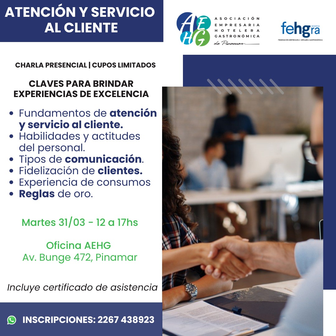 Este martes 31 se presentará la capacitación “Atención y Servicio al Cliente”, un espacio práctico y dinámico donde los interesados podrán incorporar herramientas fundamentales para brindar experiencias de excelencia, fortalecer el vínculo con los clientes y marcar la diferencia en cada interacción.