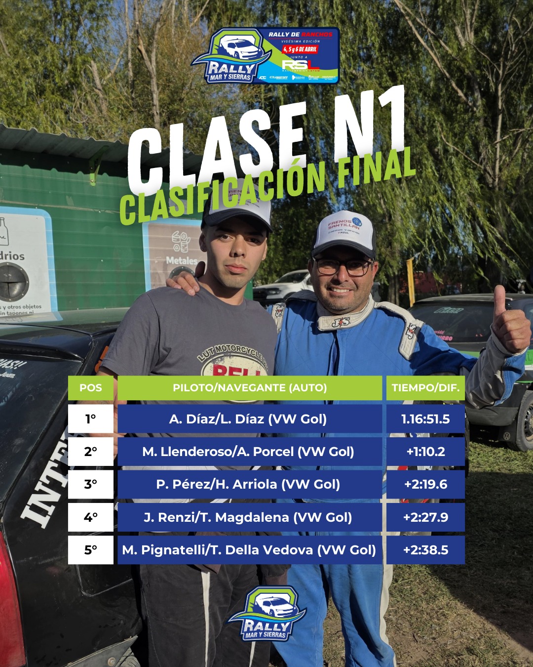 1) A. Díaz/L. Díaz (VW Gol) 1.16:51.5