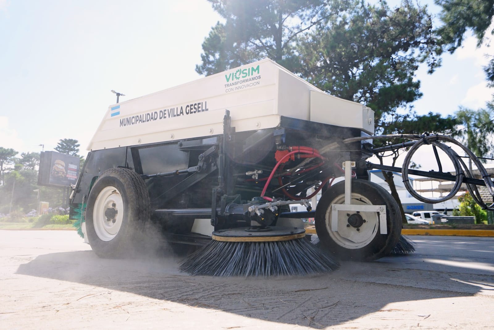 El Corralón Municipal presentó un nuevo equipo hidráulico que realiza barrido y riego simultáneo, mejorando el mantenimiento de las calles de la ciudad.
