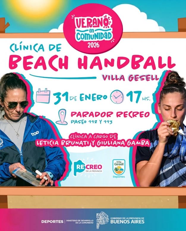 Este sábado, dos destacadas integrantes de la Selección Argentina de Handball dictarán una clínica de beach handball en el Parador Recreo de Villa Gesell, dentro del programa “Verano en Comunidad”.