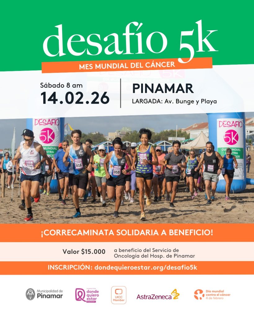 El sábado 14 de febrero se llevará a cabo la cuarta edición del Desafío 5K, la correcaminata solidaria organizada por la Fundación Donde Quiero Estar en la localidad de Pinamar, en el marco del Día Mundial del Cáncer.