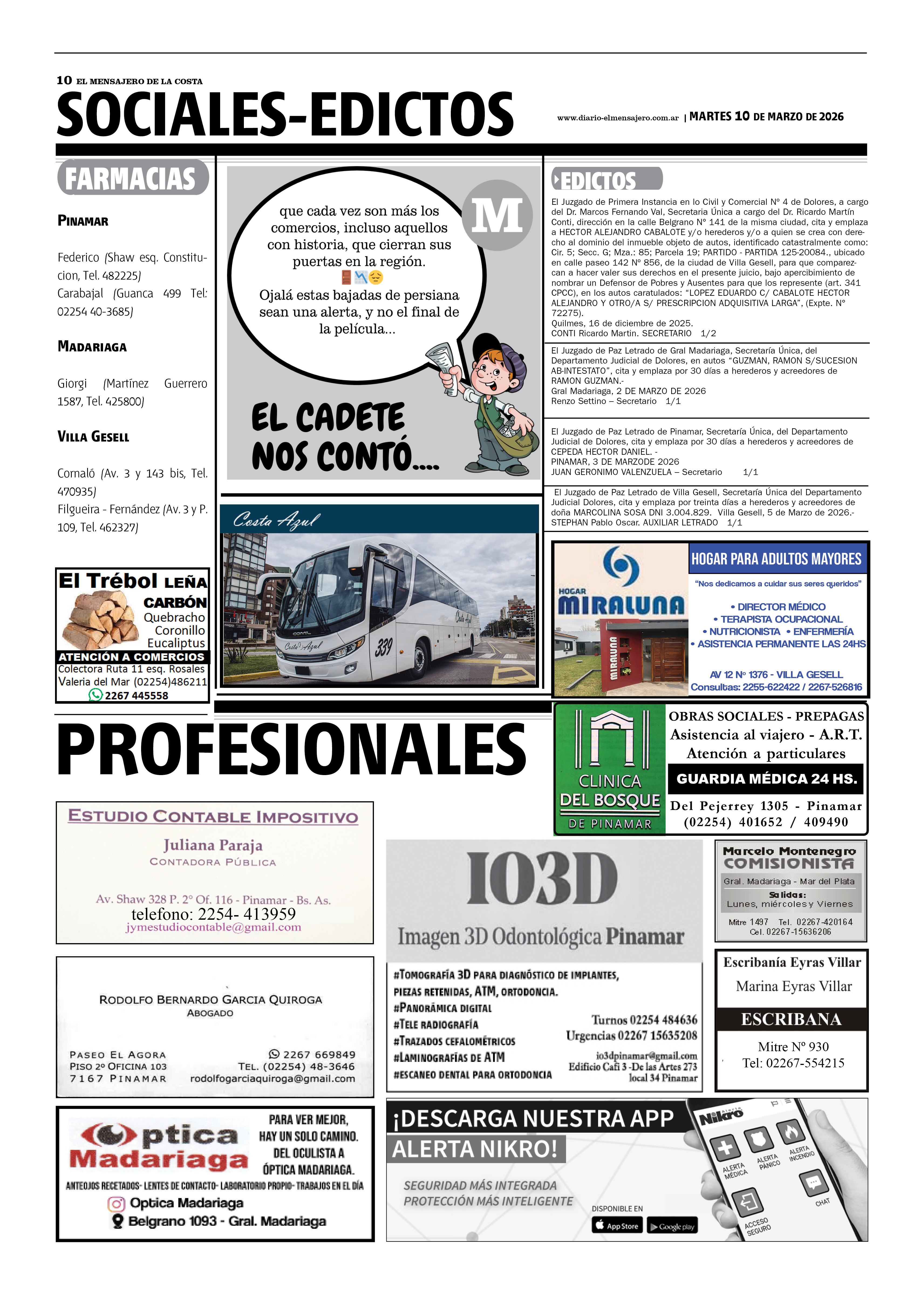 Falleció en General Madariaga, Osvaldo Gabriel Sillisqui a los 66 años de edad. Sus restos serán sepultados en el cementerio local. Servicio Casa Meoqui